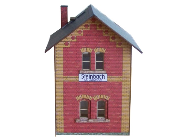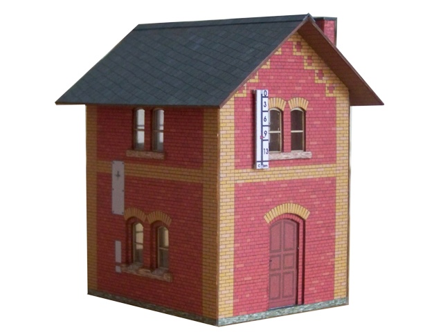 Kleines aus Klinker gemauertes Gebäude mit zahlreichen hervorgehobenen Verzierungen aus anders farbigen Mauersteinen. Im Inneren befindet sich ein Hochbehälter, dessen Vorrat zur Versorgung der Dampflokomotiven mit Wasser dient. Das erfolgt über den an der Wand angebrachten Wasserkran. (Wasserkran nicht im Lieferumfang enthalten!)