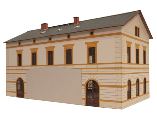 Sächsischer Bahnhof aus der Länderbahnzeit. Sie erhalten den Seitenflügel links von der Bahnsteigseite aus gesehen. Die Wände sind verputzt und das Dach ist mit Schiefer gedeckt.