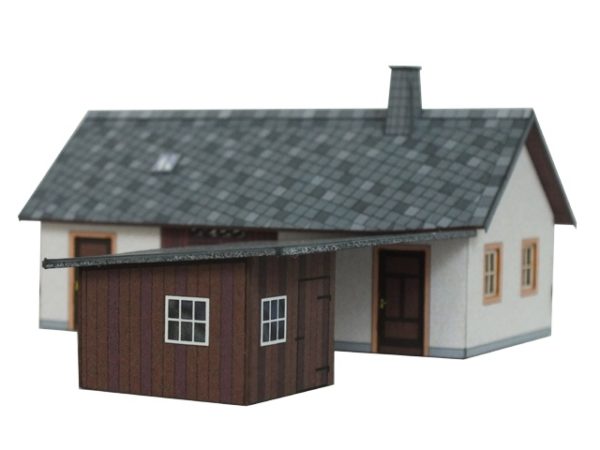 Das Nebengebäude besteht aus einem Gerätehaus mit Holzschuppen und Schauer. Die Wände sind geputzt und das Dach ist mit Schiefer gedeckt.
