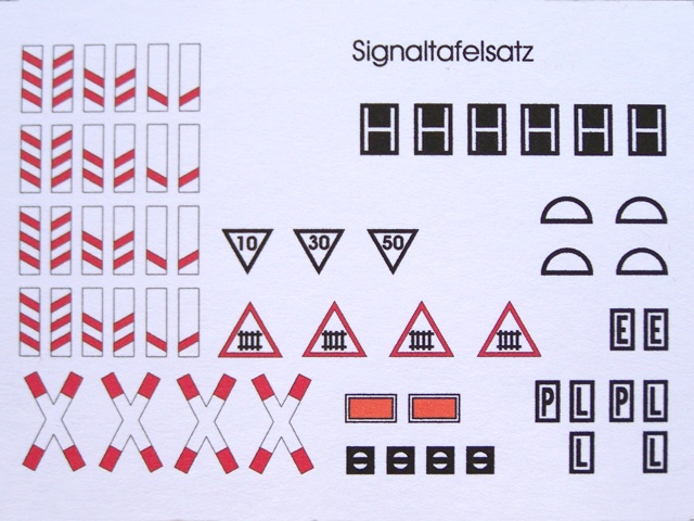 Allgemeiner Signaltafelsatz für alle O Anlagen verwendbar mit den am meisten gebrauchten Signalen und Verkehrsschildern für Bahnübergänge.